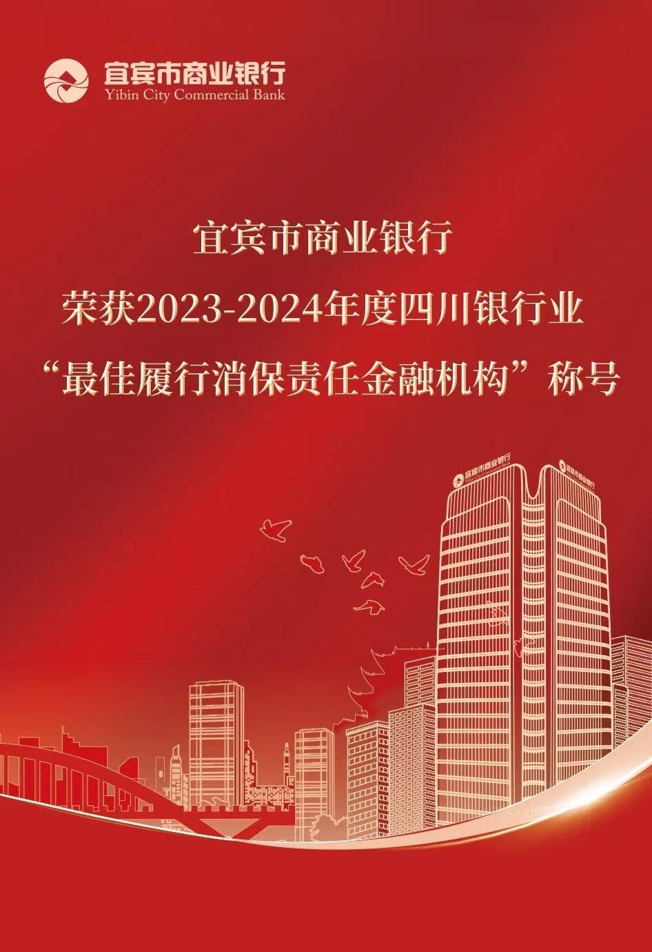 宜賓市商業(yè)銀行榮獲2023-2024年度四川銀行業(yè)“最佳履行消保責(zé)任金融機(jī)構(gòu)”稱號(hào)
